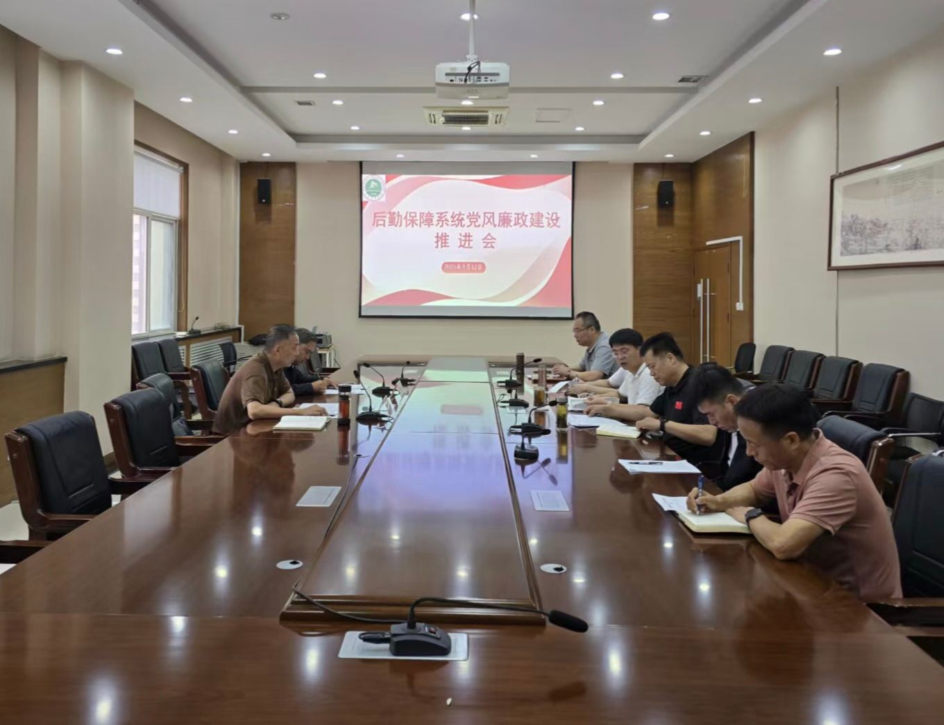 本网讯    9月12日,副校长雷振华主持召开后勤保障系统党风廉政建设工作推进会,保卫处、后勤管理处、采购与招标处、含光校区管委会、运动创伤医院和体育经济与管理学院负责人参加会议。