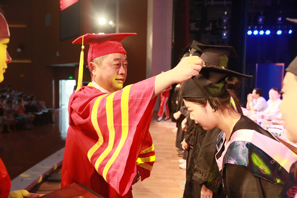 院长、院学位委员会主任委员周里与毕业生代表一一握手,为他们拨穗、颁发证书并合影留念