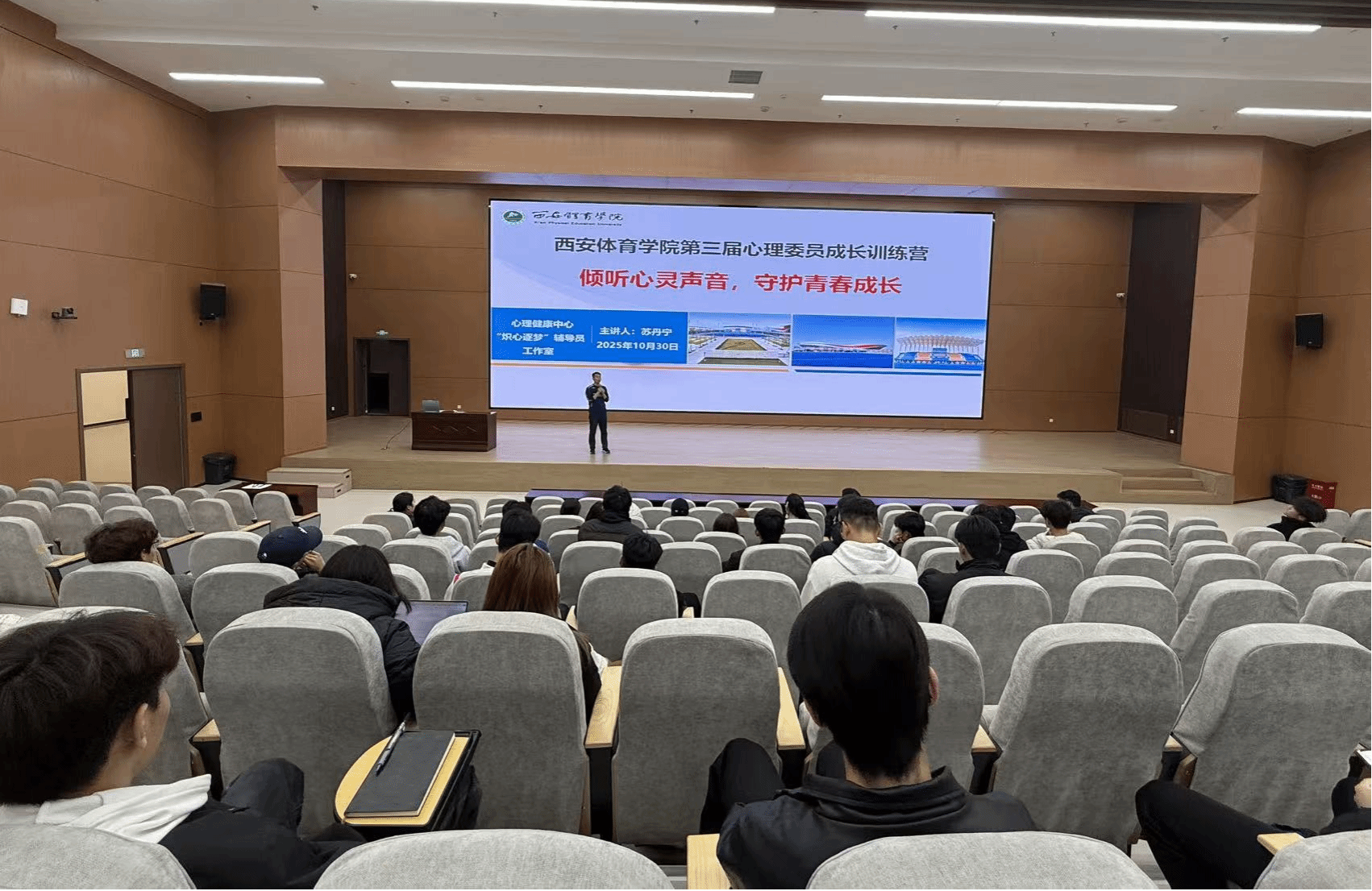 10月30日,鄠邑校区教学综合楼3楼报告厅内座无虚席。学工部苏丹宁老师聚焦我校心理健康教育资源及心理委员工作职责、心理互助技术,从“如何识别心理问题”突发性心理危机事件的处理详细介绍危机事件的应对流程,更通过视频案例提升心理委员组织心理健康主题班会的实务能力,同学们结合案例展开研讨,表示收获丰硕。
